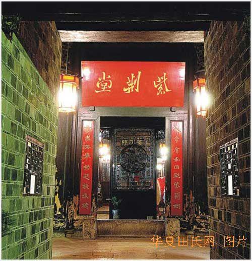 大家知道,木質(zhì)結(jié)構(gòu)的房子怕的是火,這么大一棟木房子如何防火呢?當(dāng)時(shí)本地有一位人稱活神仙的易經(jīng)大師名叫易家德的人專門運(yùn)用易學(xué)原理設(shè)計(jì)了六合網(wǎng)捕雀防火法。事實(shí)的確如此,三百年來,這所院子從來沒發(fā)生過一星半點(diǎn)火災(zāi)。堂屋中央掛著一個(gè)老人的畫像,他就是田家大院的老祖宗、第一代掌門人,也是這所宅院的總設(shè)計(jì)師——田起瑗,就是這位老人開創(chuàng)了田家的基業(yè),嚴(yán)謹(jǐn)持家,福佑子孫,造就了八代書香門第,八大豪門顯戶。畫像兩旁的百字聯(lián)概述了田氏先人于宋代從四川成都萬里橋移居湖南張家界的前因后果,以及田氏族人分脈合流的全過程。