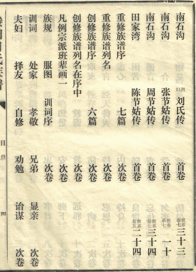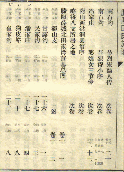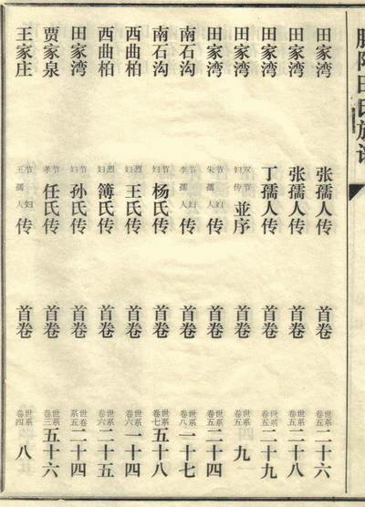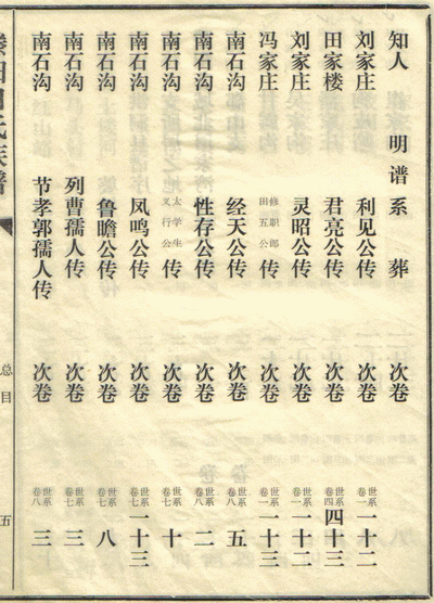 滕陽田氏居魯六百余載,期間因出外任職、隨軍征調(diào)、務(wù)工務(wù)商求學(xué)、婚姻聯(lián)親、戰(zhàn)亂外逃、自然災(zāi)害避難等等各種原因,致使本支族部分同宗,散居各地,杳無音信。雖經(jīng)五次修族譜也無法聯(lián)系。此次六修族譜之際,把本支族族譜總目錄公布與眾,愿散居于各地的本支族族眾能據(jù)此認(rèn)親。如能同宗相認(rèn),實(shí)是一大幸事!
