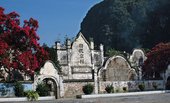 1932年,由田仕珍帶頭修建本姓祠堂。祠堂占地共2156m2,,外有風(fēng)火圍墻,一樓一底的磚木結(jié)構(gòu),內(nèi)為小四合院,樓上設(shè)有跑道、瞭望窗,外墻有花池,甬墻有石壁雕鏤篆刻,正面墻柱上的三副對聯(lián)由大學(xué)士田應(yīng)豐所撰,書法家、印江縣長潘永衡所書。院角兩顆紫荊,虬枝交錯,與古祠相得益彰。該祠集觀賞、研究于一體,十分難得。 |