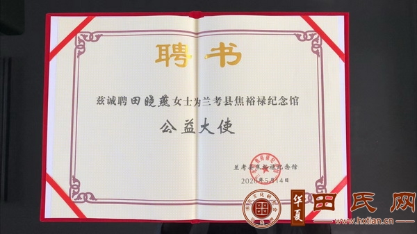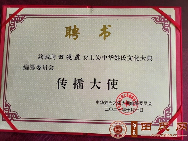 2023年被評(píng)為中華姓氏文化大典傳播大使。