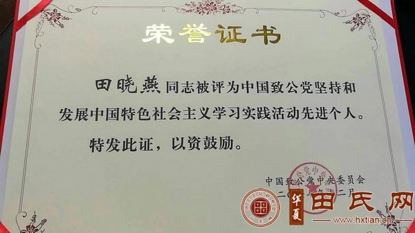 中國(guó)致公黨中央委員會(huì)先進(jìn)人物田曉燕: