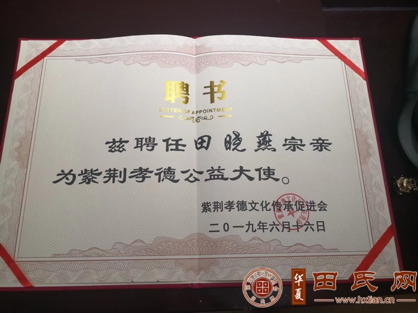 2013年田曉燕榮獲《中國(guó)夢(mèng)》愛(ài)心慈善大使稱號(hào)。2014年被商務(wù)部評(píng)為“中國(guó)夢(mèng)公益慈善大使”。2015年,2016年多次得到習(xí)仲勛的秘書張志功老人的親切接見(jiàn),張老為田曉燕親筆題詞。在黨和國(guó)家號(hào)召關(guān)心困難群眾的同時(shí),田曉燕用一個(gè)媒體人的良知詮釋了什么是社會(huì)責(zé)任。