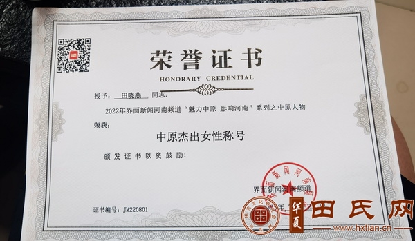 2022年被界面新聞評(píng)為:“中原杰出女性”稱號(hào)。