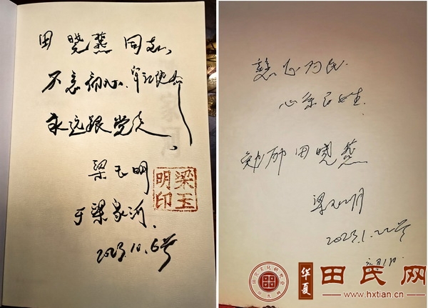 2023年多次得到梁家河村書記梁玉明的接見(jiàn)并為田曉燕提詞:慈心為民,心系百姓。