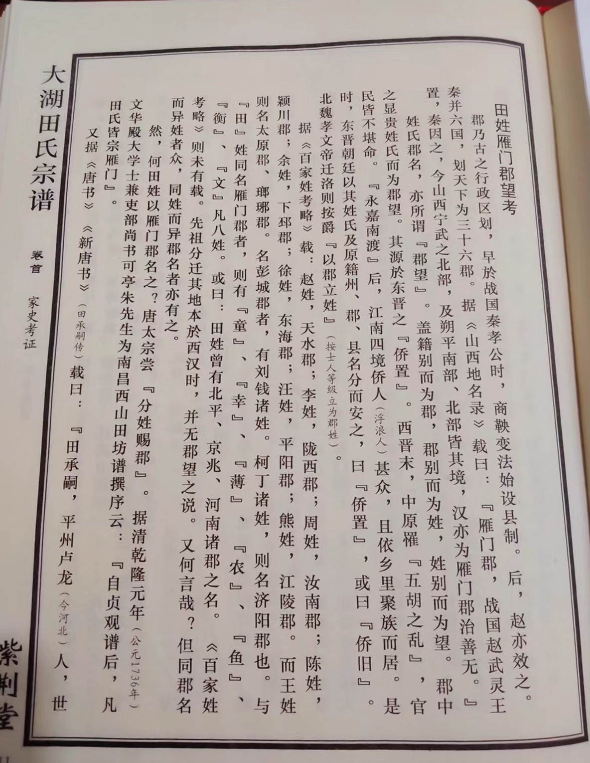 江西田柳風(fēng)《田氏雁門郡望考》