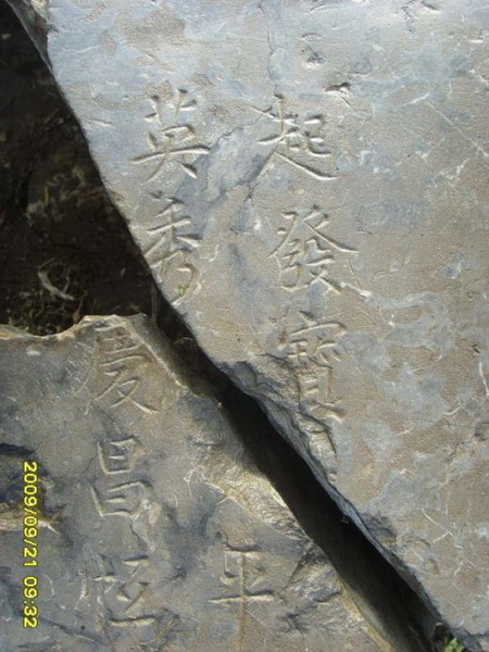 我和田華清、田榮利找到墓碑的六塊碎塊,田榮利做了拍照: