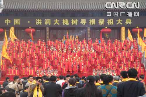 中華民族對(duì)家、家族、宗族是最崇拜的,那么洪洞大槐樹(shù)是600年前明朝朱元璋皇帝做出的移民決策之后才產(chǎn)生的這樣一個(gè)紀(jì)念移民的圣地,600年的歷史對(duì)漫長(zhǎng)的中華文明歷史來(lái)說(shuō)是很短的,因此從移民開(kāi)始到現(xiàn)在600年來(lái),人們血脈親情淵源不斷,脈胳清晰,親情連接的非常緊密。由于中國(guó)人有崇拜先祖、崇尚家族、宗族的親情,所以現(xiàn)在人們對(duì)大槐樹(shù)的感情實(shí)際上是對(duì)宗祖的感情、對(duì)先祖的感情,對(duì)老家的感情。 萬(wàn)人拜祭