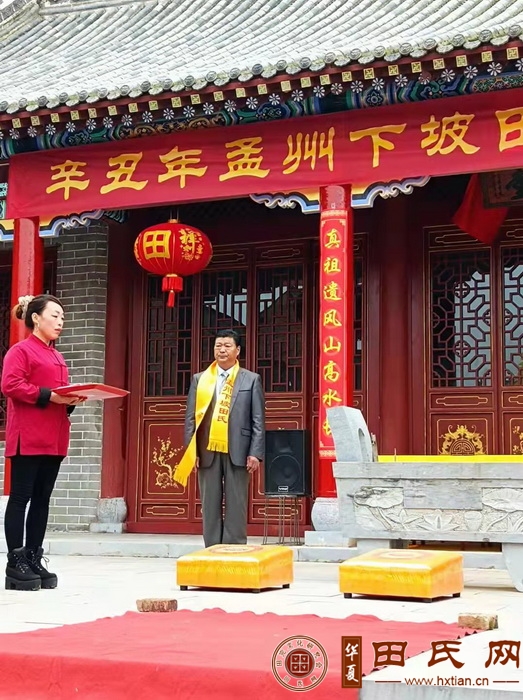 各位宗親,我們的家族是一個偉大的家族、令人自豪的家族!全場一起喊三遍:我姓田,我自豪,我加油!